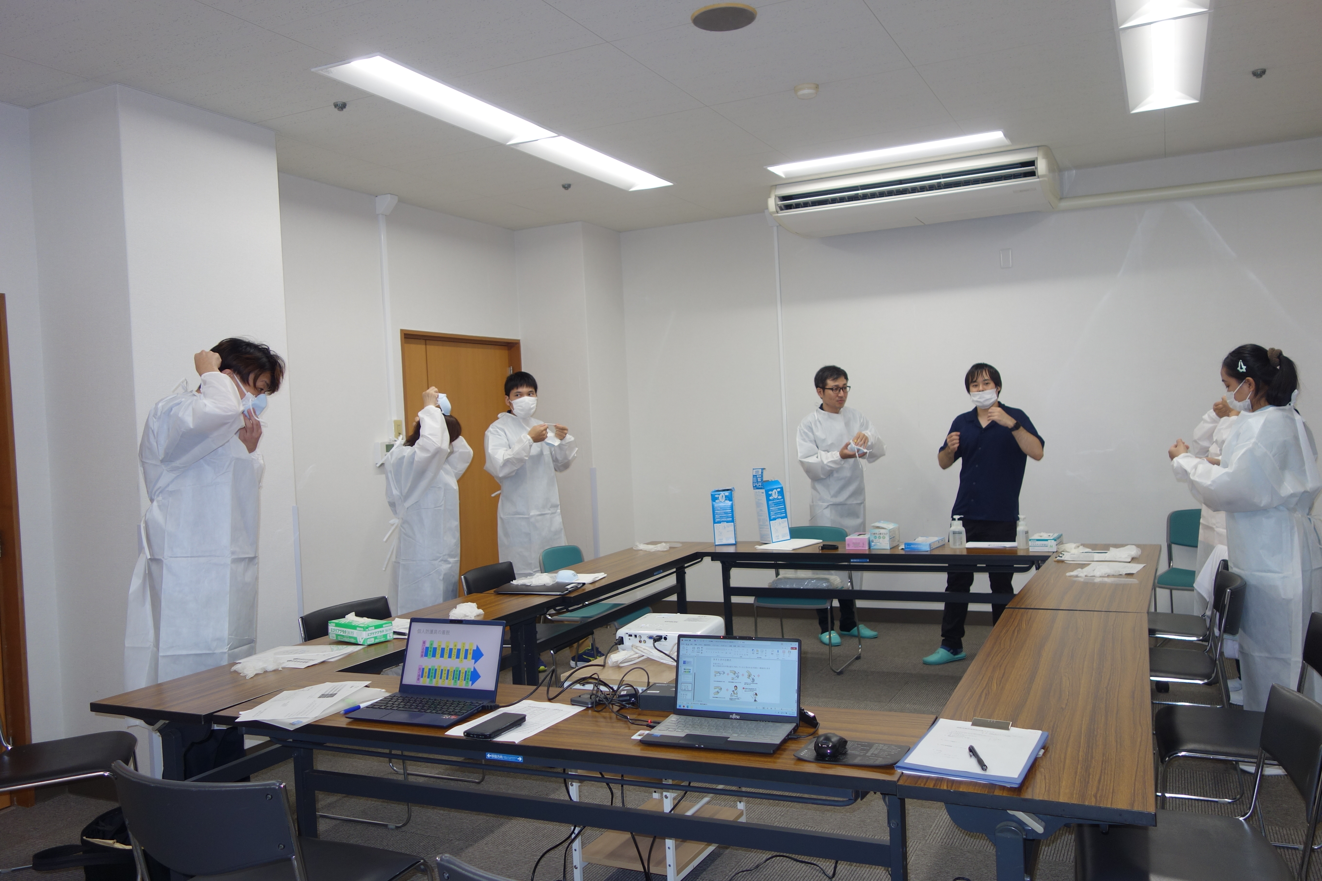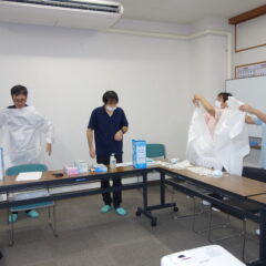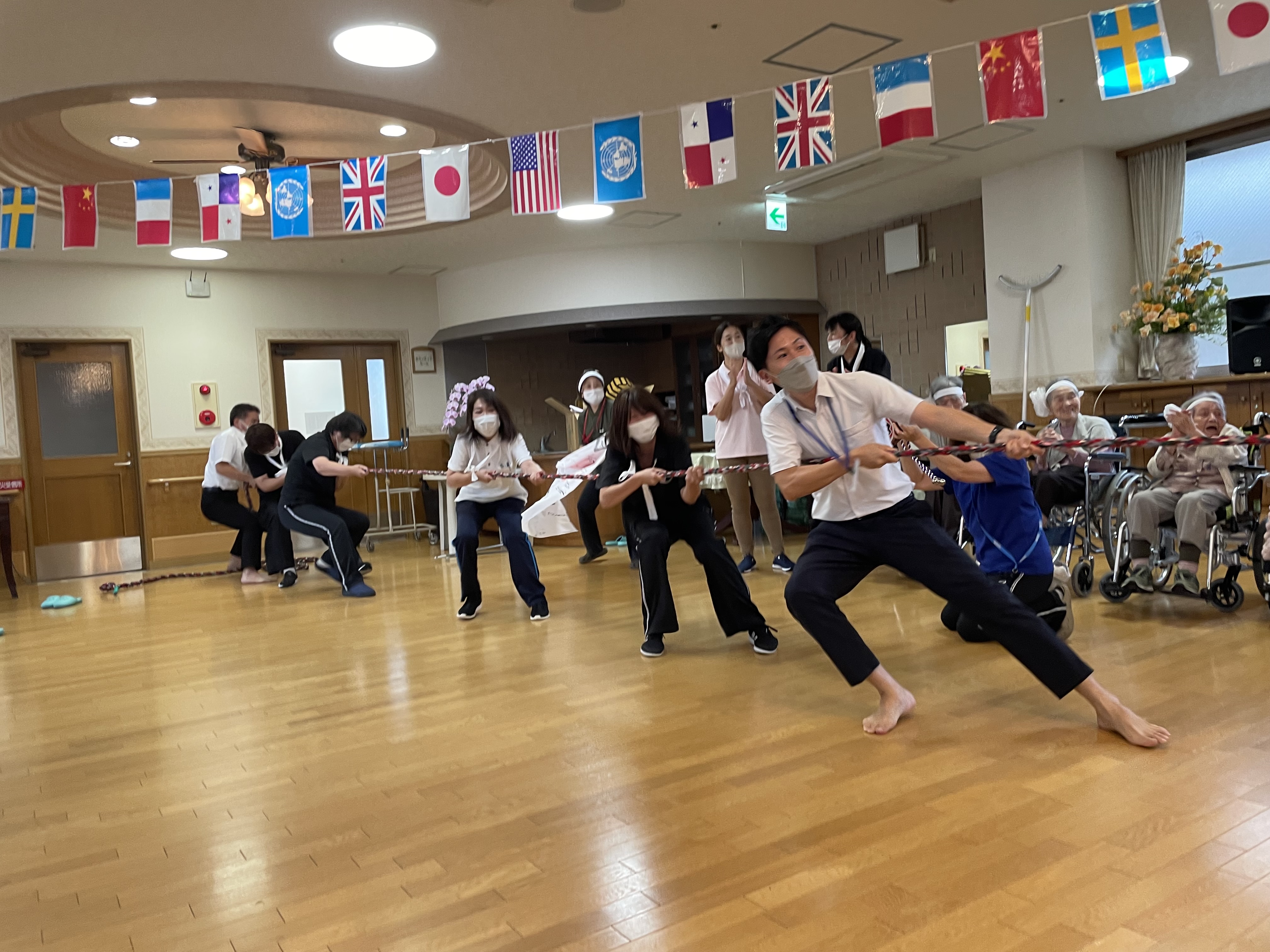 今年も七夕の行事食を提供させて頂きました。いつものチラシ寿司を牛乳パックを使い、七夕らしく星型に押してみました。素麺は、梅素麺や抹茶素麺を使い3色とし、出し汁にはトロミを付けているので、汁物で咽るご利用者でも食べやすくなっています。マッシュポテト・オクラ・ミンチ・玉ねぎ・紅生姜を具材にし春巻きの皮に包み、春巻きポテトとし、揚げました。添えとしての、索餅(さくべい)は、七夕のおやつとして作られていたそうです。奈良時代に唐から伝わったお菓子で、素麺のルーツとも言われているそうです。鶏むね肉を使った夏サラダと青りんご風ゼリーも合せて七夕の行事食としました。(特別養護老人ホーム打田皆楽園)